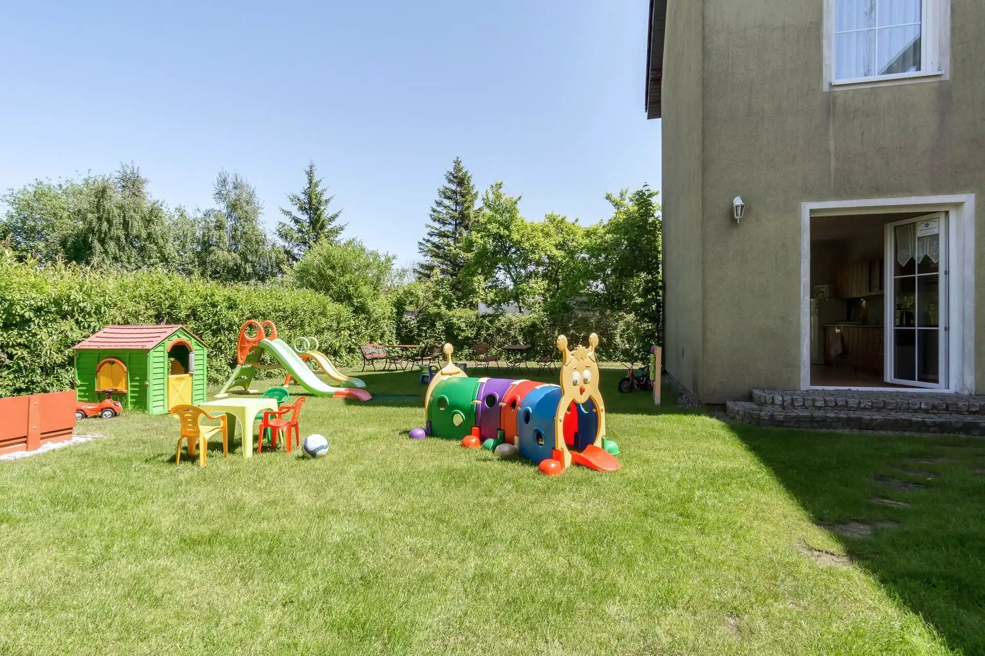 W trosce o Państwa dzieci na wyposażeniu pensjonatu posiadamy: foteliki do karmienia, podgrzewacze do butelek, plastikowe naczynia i sztućce, miski do kąpieli, stołeczki w łazienkach ułatwiające umycie rąk. Natomiast w kuchni umieściliśmy także kącik zabaw z klockami, puzzlami, książeczkami i zabawkami. Dla bezpieczeństwa maluchów blaty we wszystkich stołach mają zaokrąglone brzegi.